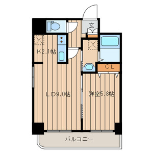 | 間取 | 1LDK ( LD9.0・K2.1・洋5.8 ) |